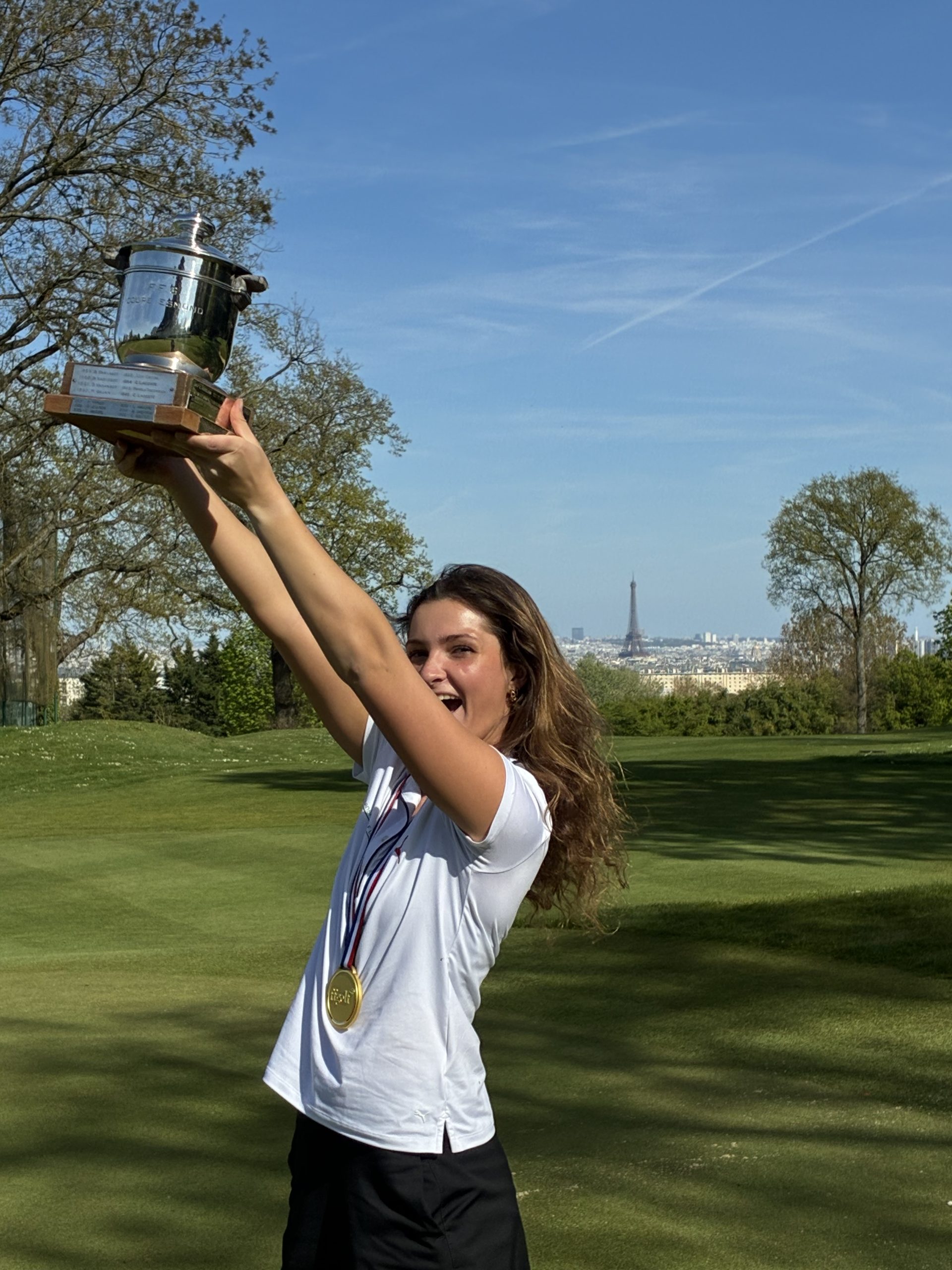 … slår Benedite Brent-Petersen fast i en bil på vej til lufthavnen efter sin triumf i French U-21 Girls.
